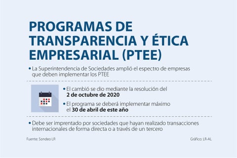 Por esta razón, y si usted está dentro del rango de empresas que la Superintendencia de Sociedades designó para la implementación de los Ptee, debe tener presente que tiene un mes para diseñar el programa. Si su organización en 2020 realizó negocios o transacciones internacionales directamente o a través de un intermediario, deberá aplicar los Ptee.