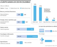 Tal como comentó Benjumea, sectores como el de petróleo y gas; energía y minas, dada la coyuntura actual, tienen ingresos un poco más bajos; con lo que el sueldo de un country business developer de una petrolera puede rondar entre $35 millones y $45 millones; y para un banquero la cifra podría estar entre $28 millones y $38 millones.