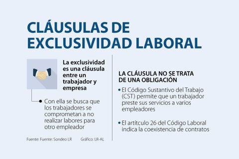 Sobre el consenso entre trabajadores y empleadores acerca de las cláusulas, Karla Escobar, directora del departamento de Derecho Laboral de Cáez Muñoz Mejía Abogados, afirmó que “debe acordarse expresamente en los contratos de trabajo, es decir, debe convenirse la exclusividad del servicio por parte del trabajador”.