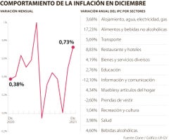 El Departamento Administrativo Nacional de Estadística (Dane) dio a conocer que, en diciembre de 2021, la inflación anual subió 5,62%, frente a la reportada en el mismo periodo del año anterior, cuando fue de 1,61%. Mientras que la variación mensual del IPC fue 0,73%.