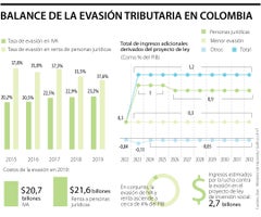 En el proyecto de ley de inversión social, el Ministerio de Hacienda asegura que los impuestos de renta y de IVA, en conjunto, presentan una evasión de 4% del PIB, valor que representa un poco menos de una tercera parte de los ingresos tributarios del Gobierno Nacional.