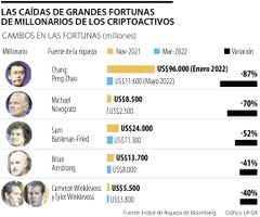 Además de Zhao, otro multimillonario de las criptomonedas que ha visto derrumbar su fortuna es Michael Novogratz, director ejecutivo del criptobanco mercantil Galaxy Digital. La riqueza de Novogratz se ha desplomado hasta los US$2.500 millones en marzo de este año desde US$8.500 millones que tenía a principios de noviembre de 2021.