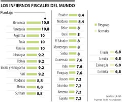 Colombia vuelve a sonar en los rankings globales, pero esta vez no el de la felicidad, 1841 Foundation lo ubicó en el puesto 24 en materia de "infiernos fiscales", es decir, economías que cuentan con fragilidades notorias en sus sistemas tributarios, ya sea por contar con impuestos muy altos o muy bajos.
