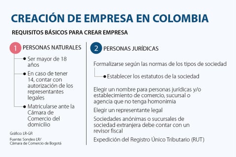 Márquez aseguró que las personas naturales deben iniciar con la creación de empresa en la Cámara de Comercio a través del Registro Mercantil. “Entre la información solicitada estará a qué se va a dedicar, dirección, correo electrónico y demás información básica. Hay que matricular el establecimiento de comercio y le solicitarán un estimado de los activos”, anotó. La CCB, a su vez, adicionó que para el Registro Mercantil es necesario tener diligenciado y firmado el Registro Único Empresarial y Social (Rues).