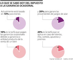 La tarifa llega a 20% cuando se trata de los ingresos obtenidos en los ámbitos de loterías, rifas, sorteos, apuestas y premios. Sin embargo, vale aclarar, al un impuesto complementario a la renta, este solo aplica para los declarantes. Por lo que una persona que no declara renta no pagará ningún impuesto así haya obtenido una ganancia ocasional.