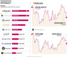Actualmente existen más de 10.000 criptomonedas, un extenso listado que está liderado por el bitcoin, con más de US$776.029 millones en capitalización bursátil. Le siguen ethereum, con US$364.469 millones; tether, con US$82.581 millones; BNB, con US$68.005 millones; y USD Coin, con US$50.797 millones.