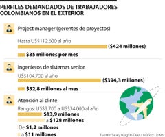 Lo primero que resalta es que los cargos más demandados son los de gerentes de proyectos senior, ingenieros de sistemas y consultores o analistas de atención al cliente. Allí encontraron que hay una diferencia salarial fuerte frente a quienes operan con contratos laborales en Colombia, frente a los que tienen ya algo firmado con compañías del extranjero.